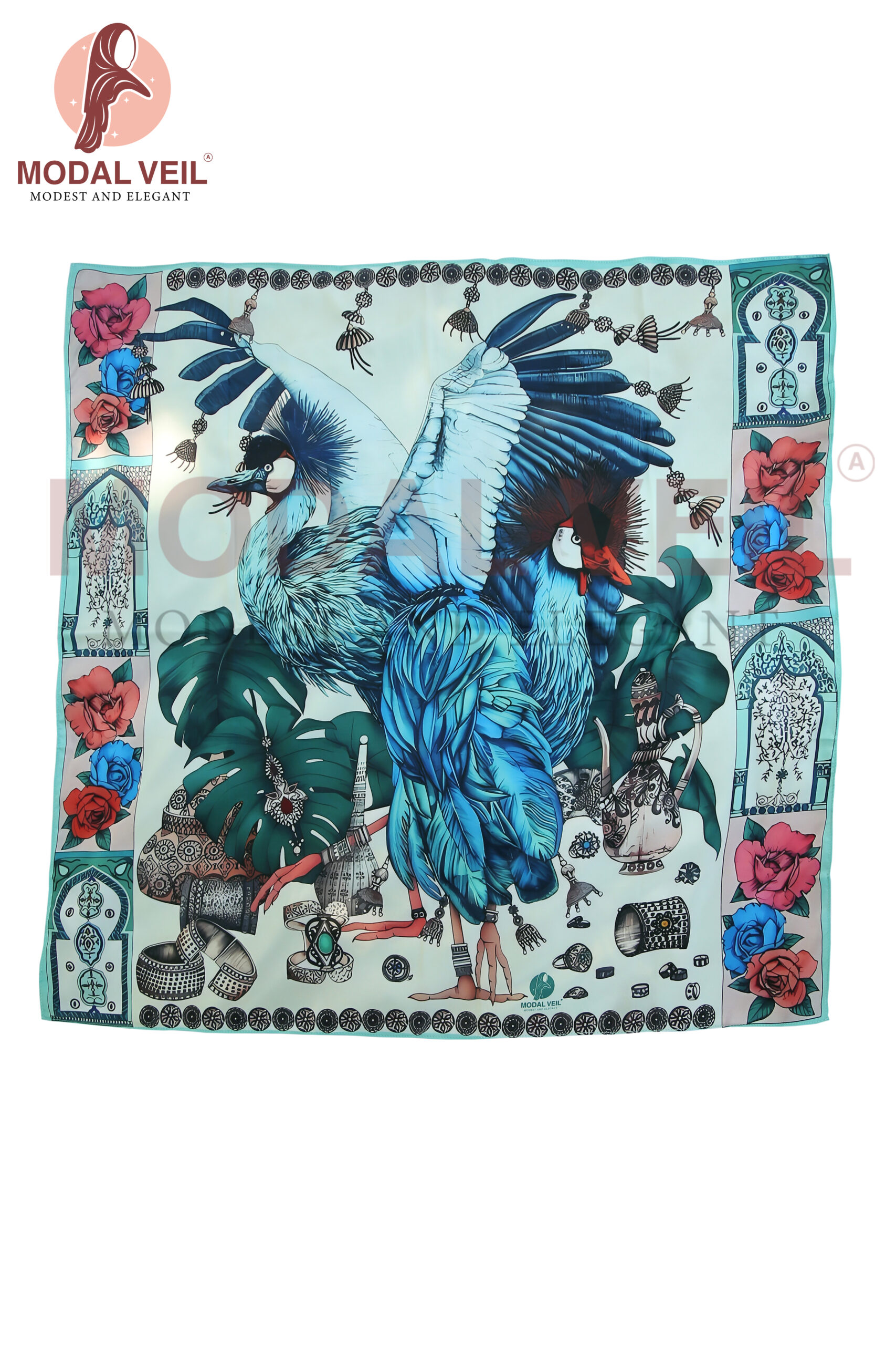 The Crowned Crane veil blends satin luxury with modern square styling. Perfect for women who love chic, unique accessories that stand out with elegance.