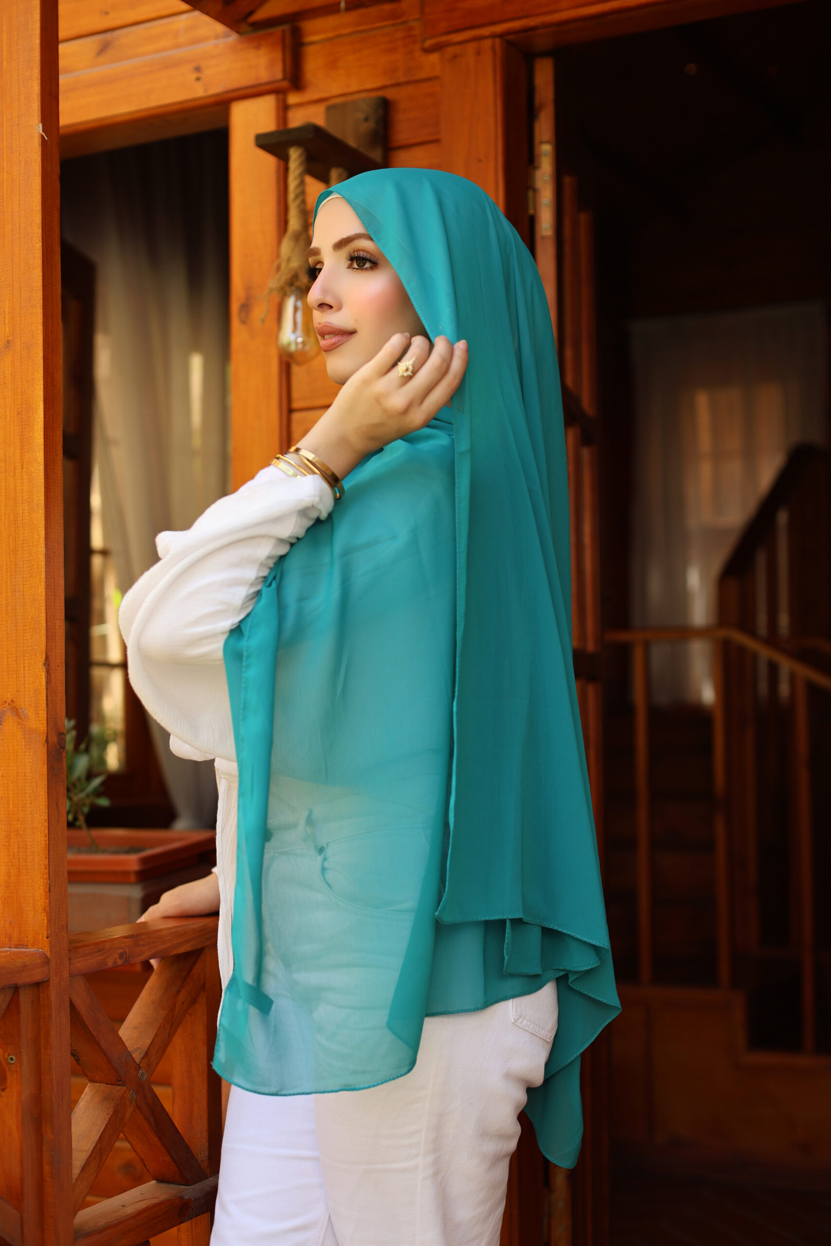 The Lara Turquoise veil brings a sense of freshness and poise. Its soft chiffon fabric flows beautifully, while the turquoise tone adds a delicate splash of color perfect for any season.