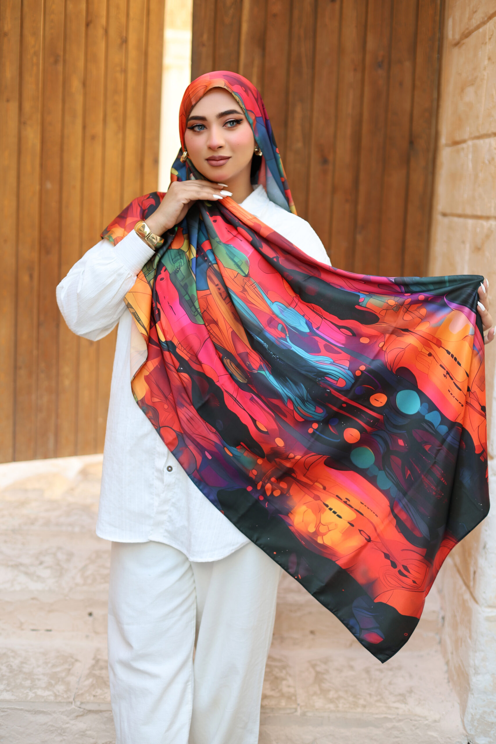 The Rawan veil offers a subtle yet refined look with its silky satin fabric. Its smooth texture ensures comfort, while its glossy finish makes it suitable for both casual and formal wear.