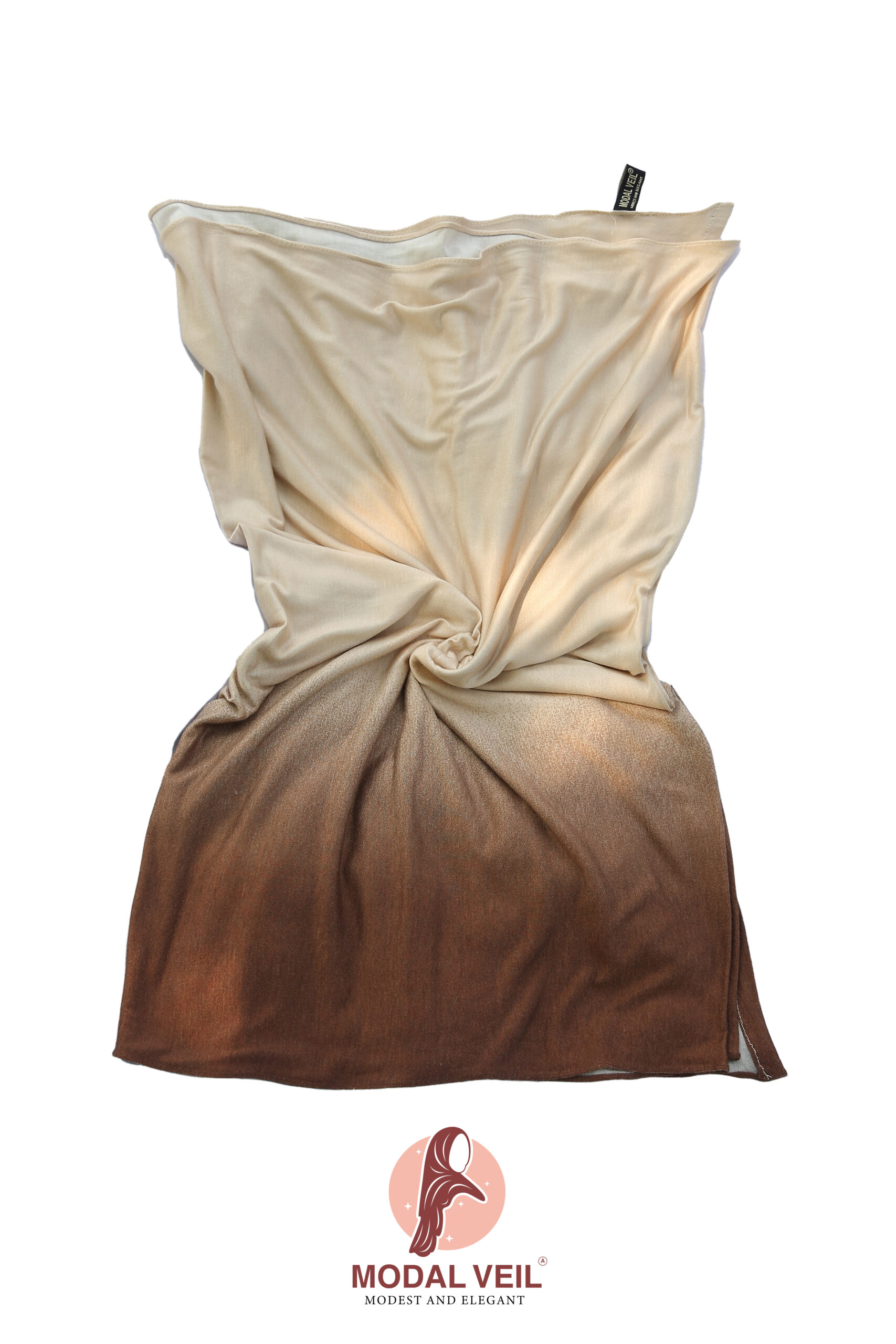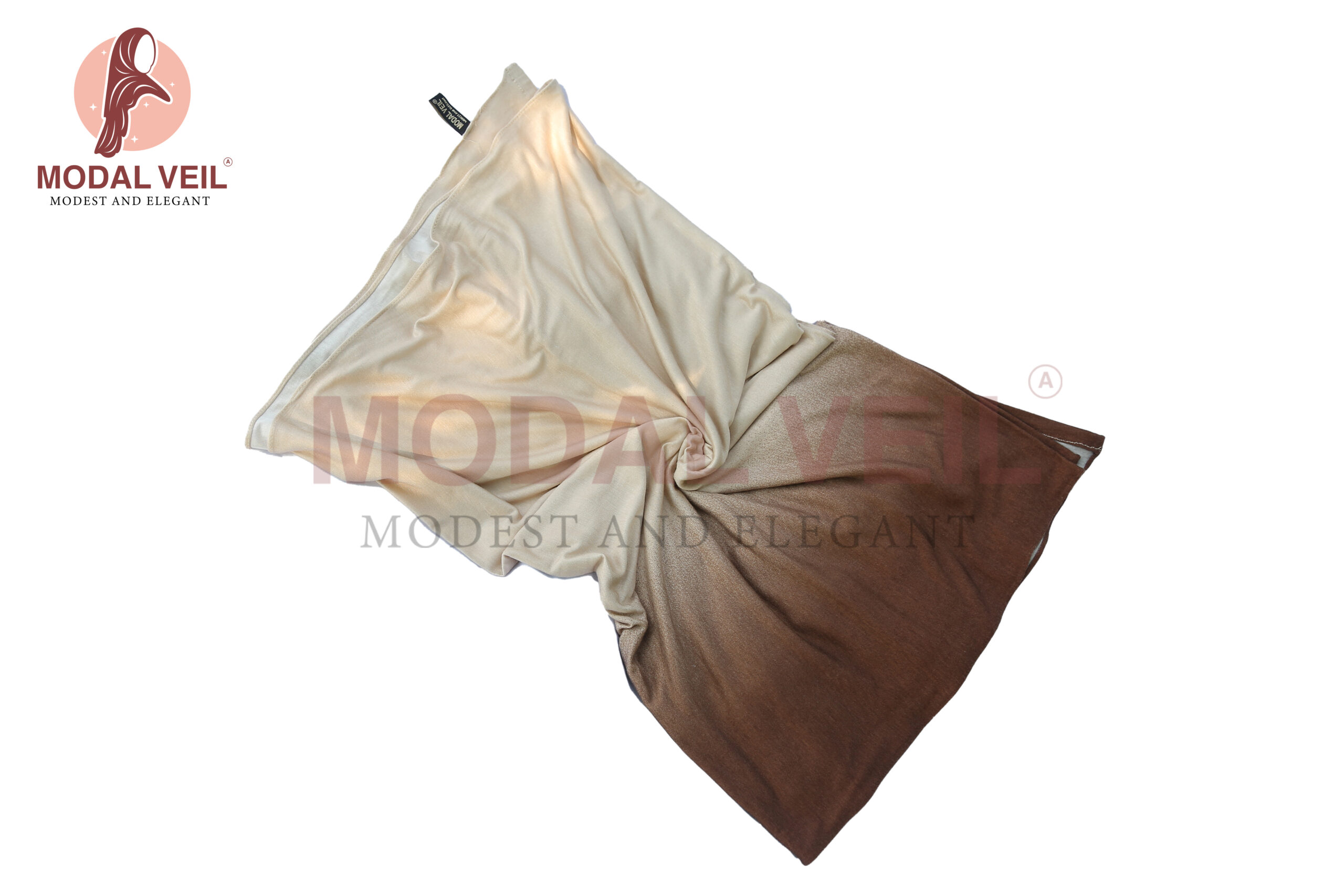 The Retal Degrade Beige & Brown veil captures subtle elegance with its smooth gradient tones. Crafted from breathable cotton lycra, it drapes beautifully and provides a gentle stretch for perfect comfort. This design blends simplicity with an artistic finish — ideal for daily elegance or special gatherings.